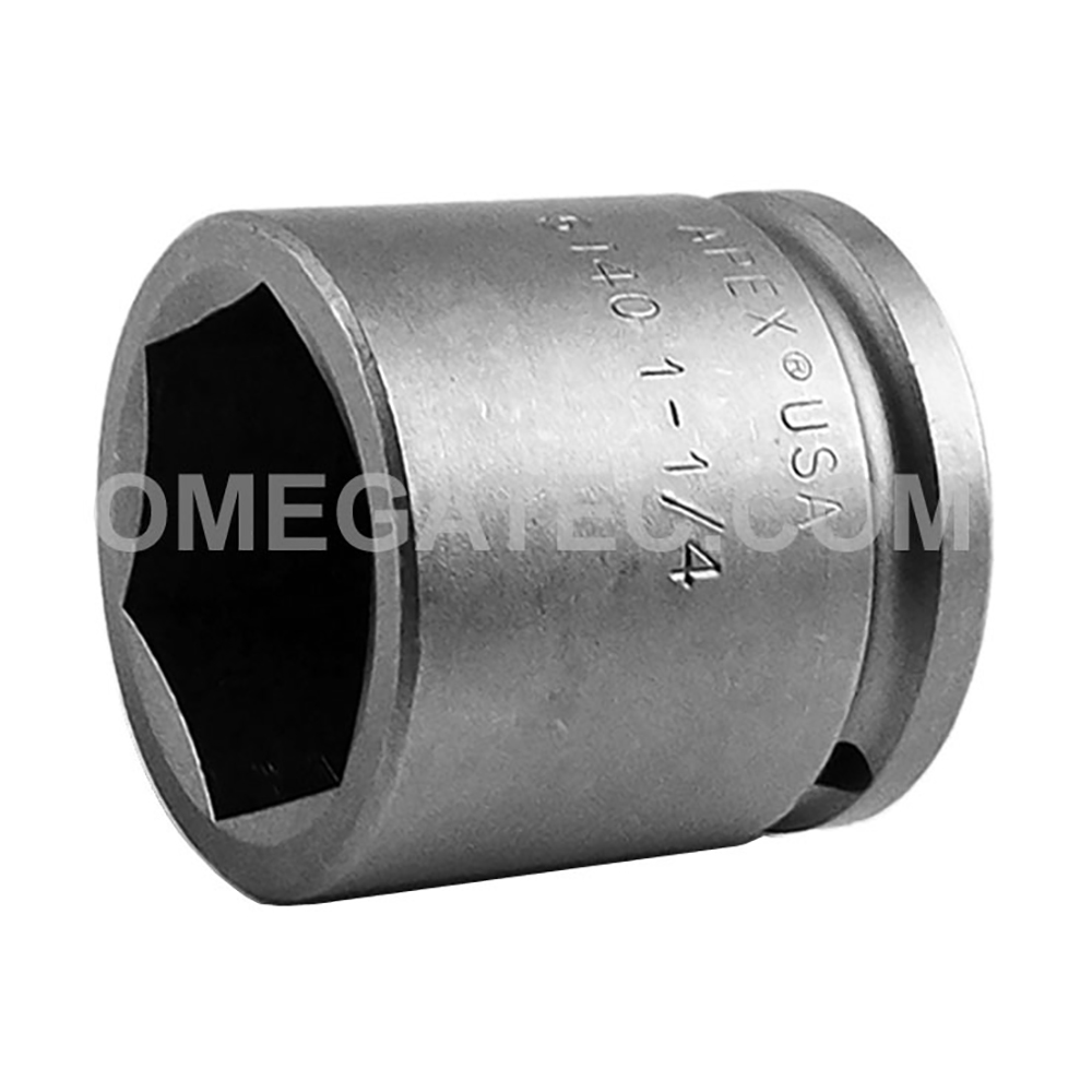 5140 Apex® 6-Point 1-1/4” Standard Impact Socket, 1/2” Square Drive. Socket Type: 6-Point Hex Opening: 1-1/4” Overall Length: 1-3/4” Nose End Diameter: 1-3/4” Drive End Diameter: 1-3/4” Opening Depth: 13/16”