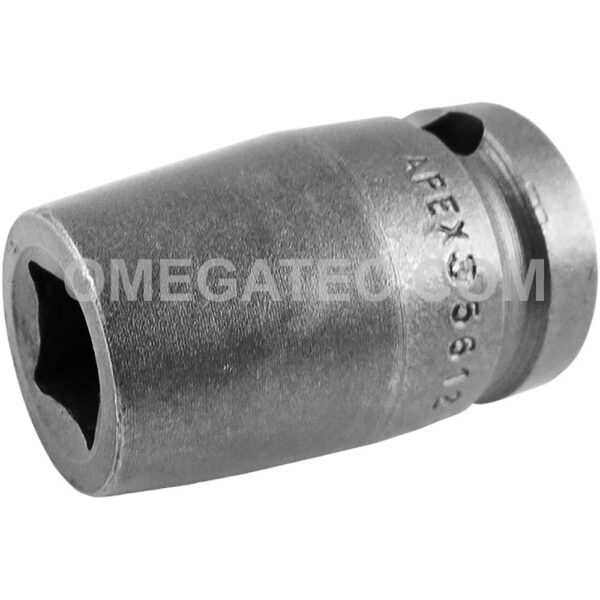 5612 Apex® 4-Point 3/8” Standard Impact Socket, For Single Square Nuts, 1/2” Square Drive. Socket Type: 4-Point Square Opening: 3/8” Overall Length: 1-1/2” Nose End Diameter: 3/4” Drive End Diameter: 15/16” Opening Depth: 1/4”