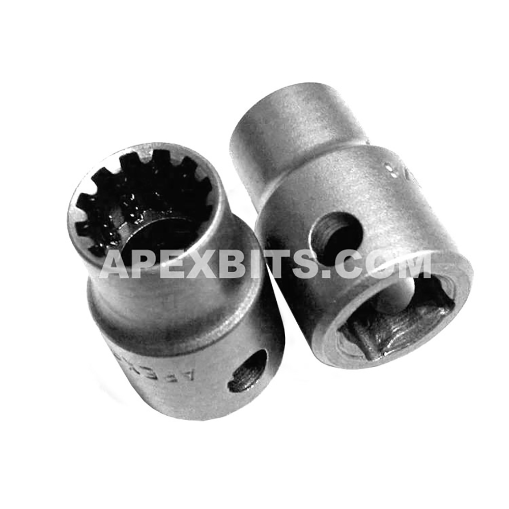 CMS-3412 #12 Apex® Standard Spline Impact Socket, 3/8” Square Drive. Spline Size: #12 Nominal Size: 3/8” Overall Length: 1” / 25mm Nose End Diameter: 17/32” / 14mm Drive End Diameter: 21/32” / 17mm